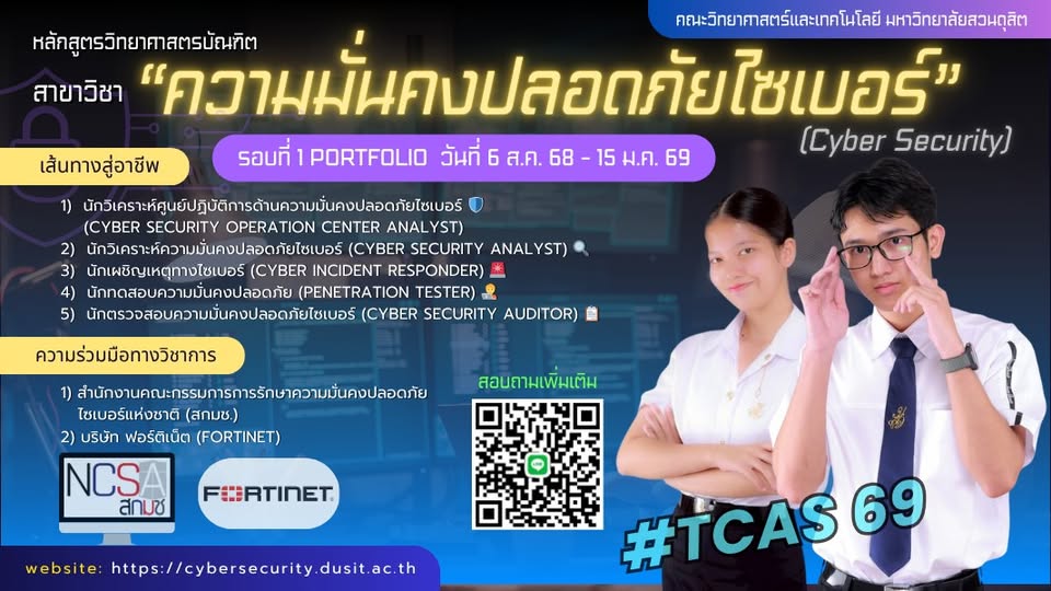 🎓 หลักสูตรวิทยาศาสตรบัณฑิต สาขาวิชา "ความมั่นคงปลอดภัยไซเบอร์"