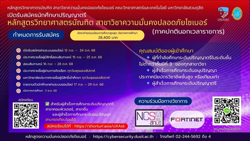 🎓 หลักสูตรวิทยาศาสตรบัณฑิต สาขาวิชา "ความมั่นคงปลอดภัยไซเบอร์"